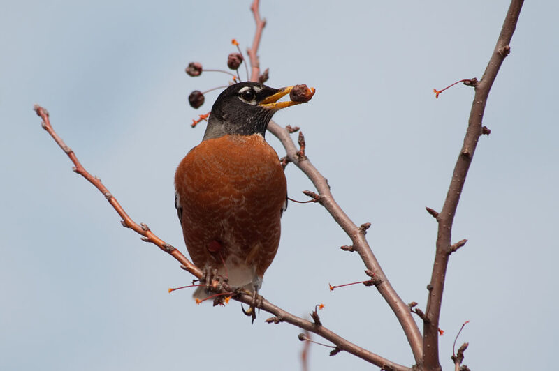 La langue anglaise apporte beaucoup de confusion (c’est aussi vrai pour plusieurs autres espèces). Les merles sont nommés thrush, et quelque fois blackbird, les grives d’ici sont aussi nommées thrush. La seule exception, c’est le merle d’Amérique que est nommé American robin. Quelle autre espèce est aussi nommée robin? Le rougegorge familier…